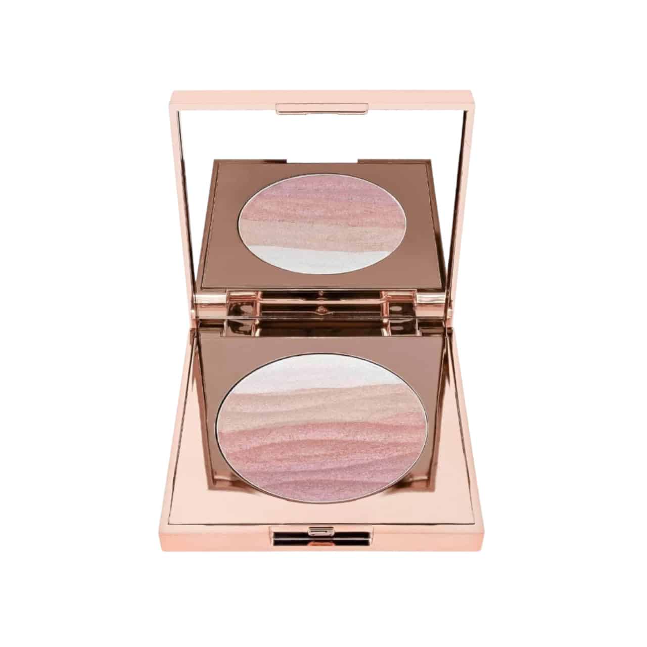 A dual-pan blush and highlighter palette that delivers a radiant flush of color and shimmering glow in one sleek compact.