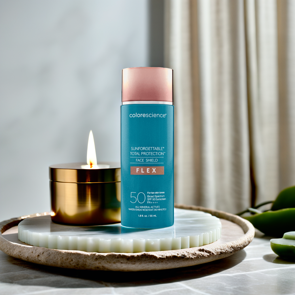 Sunforgettable® Total Protection® Face Shield Flex SPF 50 in Tan is a hydrating, antioxidant-rich mineral formula powered by patented EnviroScreen® Technology for comprehensive defense against UVA/UVB, blue light, pollution, and infrared radiation. FLEX features iron oxide pigments that bloom in your fingertips to deliver buildable demi-matte coverage, adapting to a broad range of skin tones. Non-comedogenic, hypoallergenic, and free of parabens, sulfates, phthalates, oil, gluten, and fragrance, it offers water-resistant protection for up to 40 minutes and is safe for all skin types.